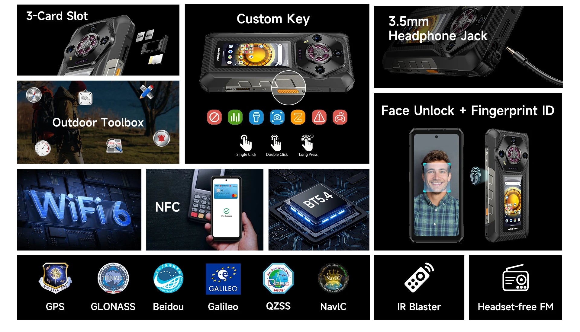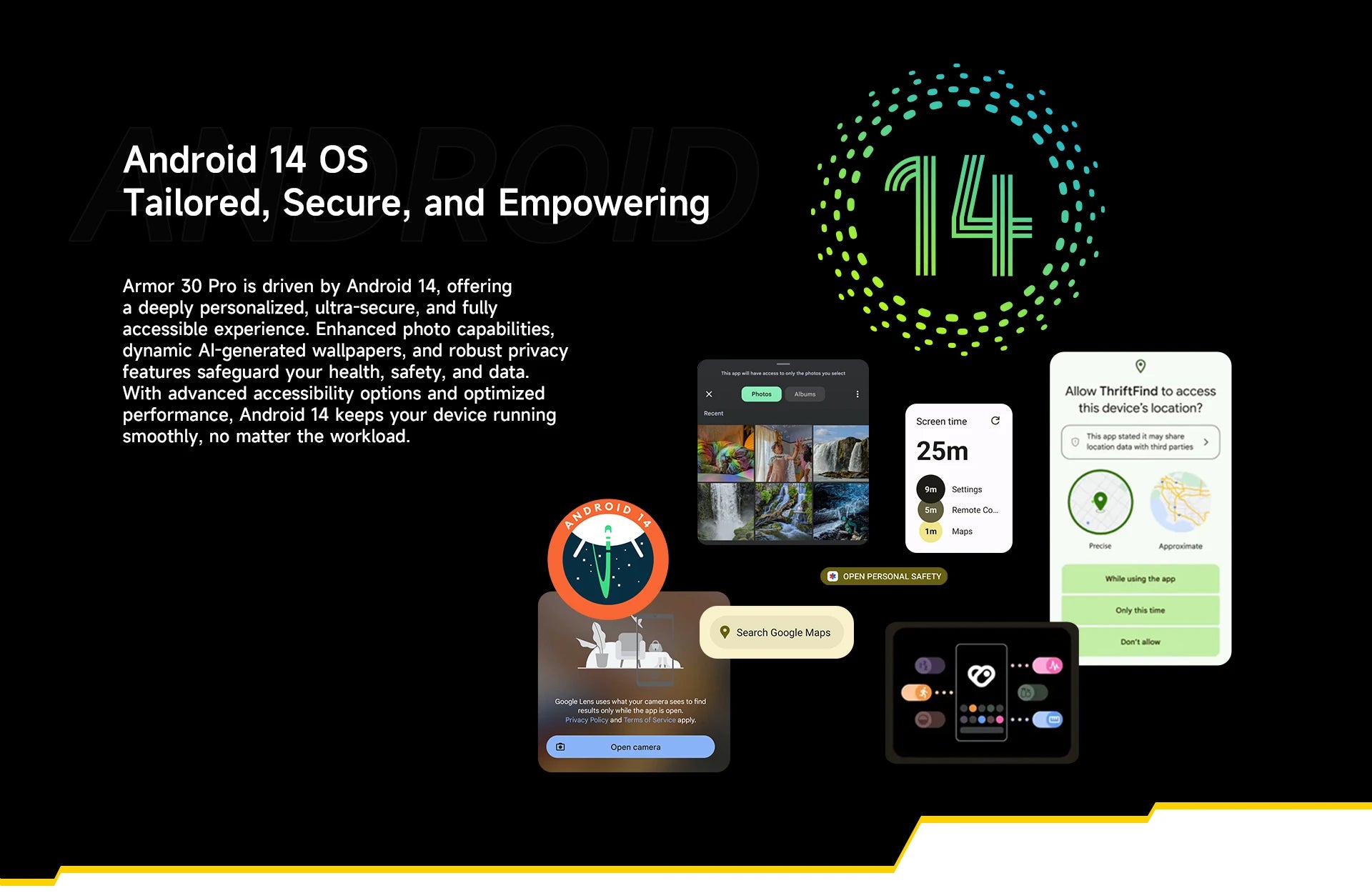 Ulefone Armor 30 Pro 5G Rugged Phone Android 14 Smartphone 6.95" 120Hz 32GB+512GB 12800mAh Night Camera 64MP NFC