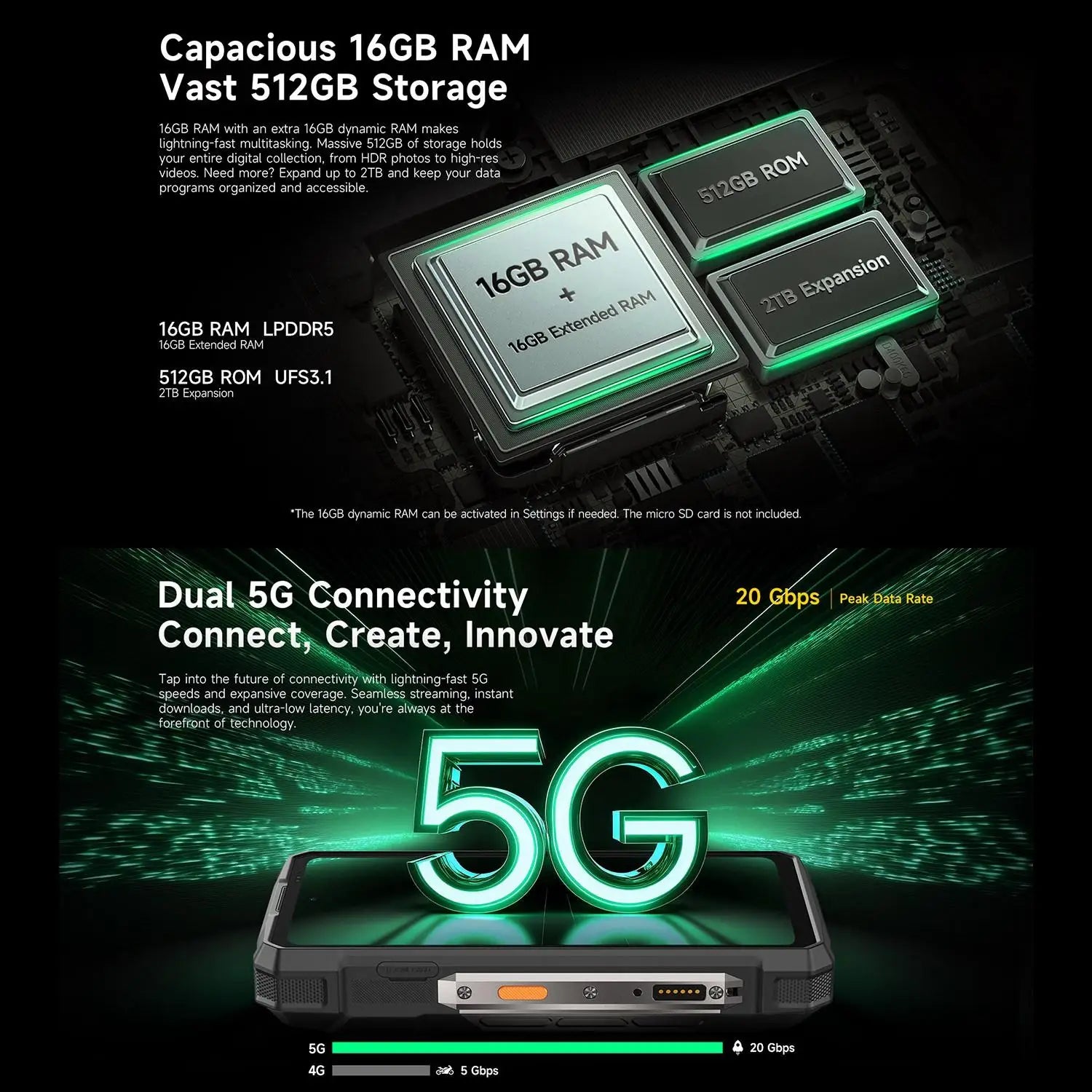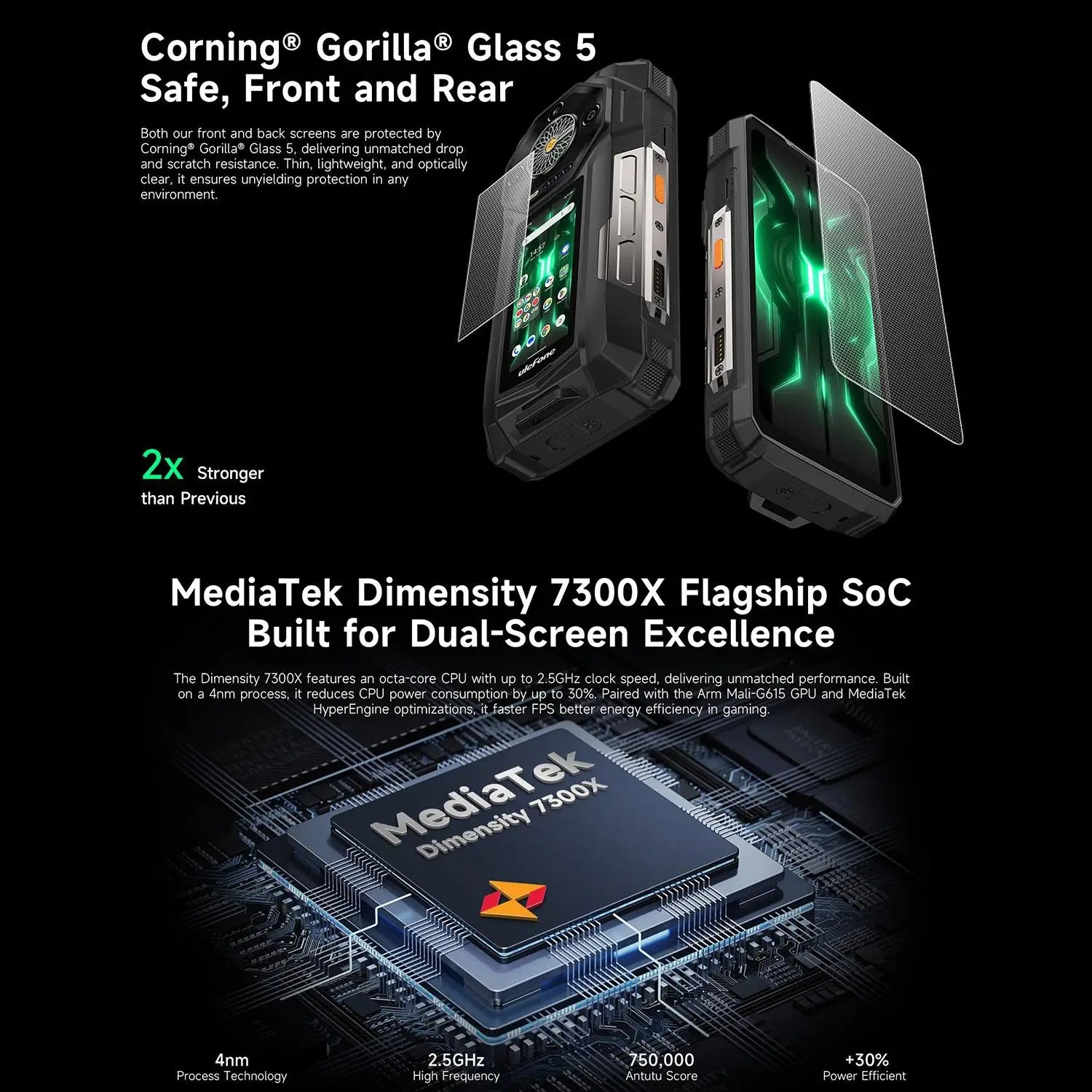 Ulefone Armor 33 Pro Rugged Smartphone 5G Dual Screen 6.95" 120Hz 16GB+512GB 25500mAh Battery 66W 64MP Night Vision NFC