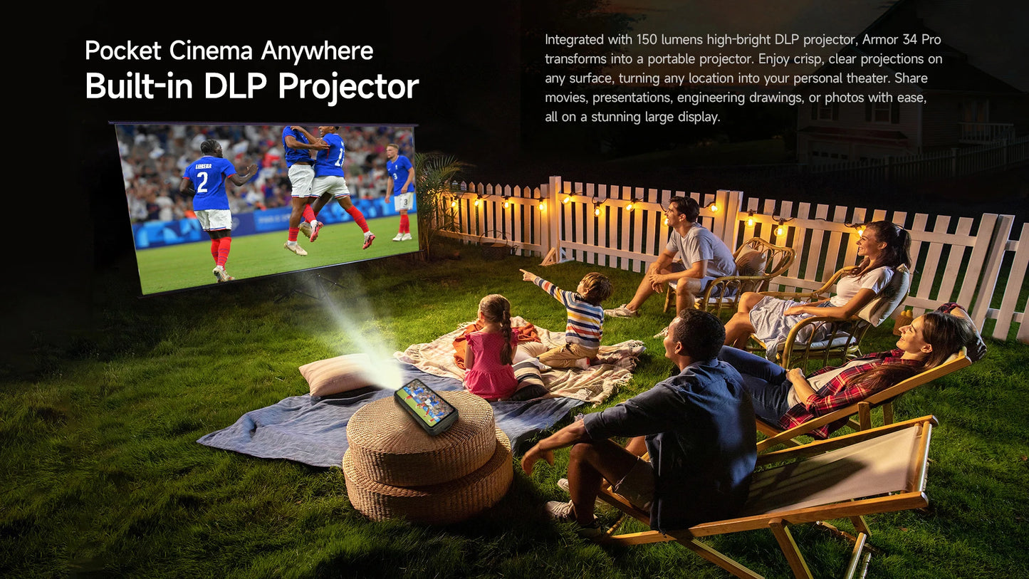 Ulefone Armor 34 Pro 5G AI 25500mAh Rugged Phone Smartphone Android 15 32GB+512GB Built-in DLP Projector 6.95" NFC Mobile Phone