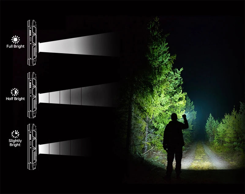 Flashlight: 1200 Lumen 200 Meter Flashlight, Camping Light, Red/Blue Warning Light