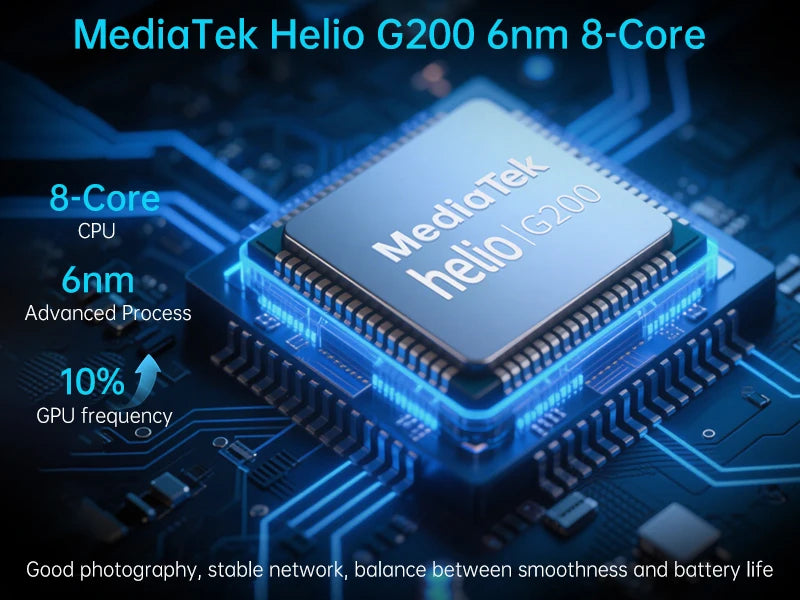 CPU: MediaTek Helio G200 6nm 8-Core CPU