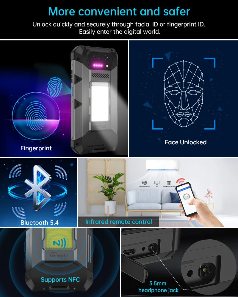 Unihertz 8849 Hike Smartphone Android 14 With 200 Meter Flashlight LED 23800mAh 24GB 512GB Dual Speaker Helio G200 IP68/IP69K 4G