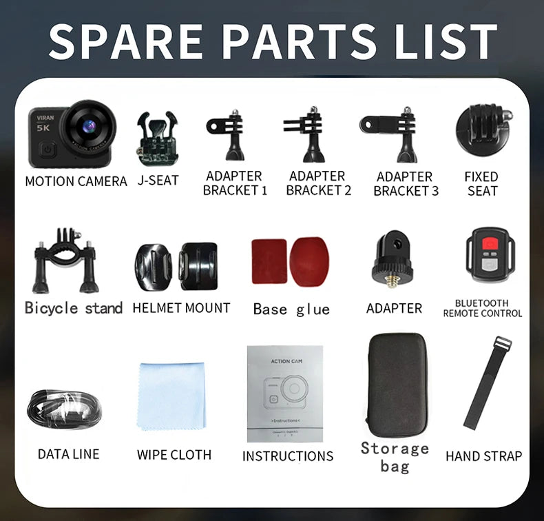 VIRAN V10 5K Action Camera Electronic Image Stabilization 2" Touch LCD 4K Waterproof Action Camera Dashcam Motion Detection