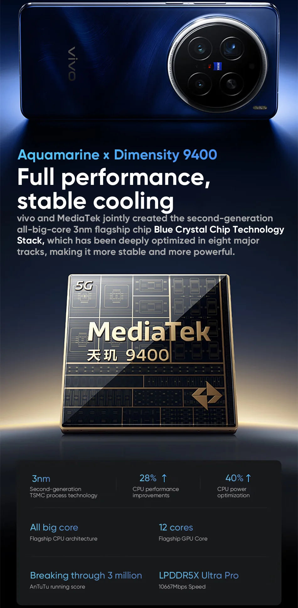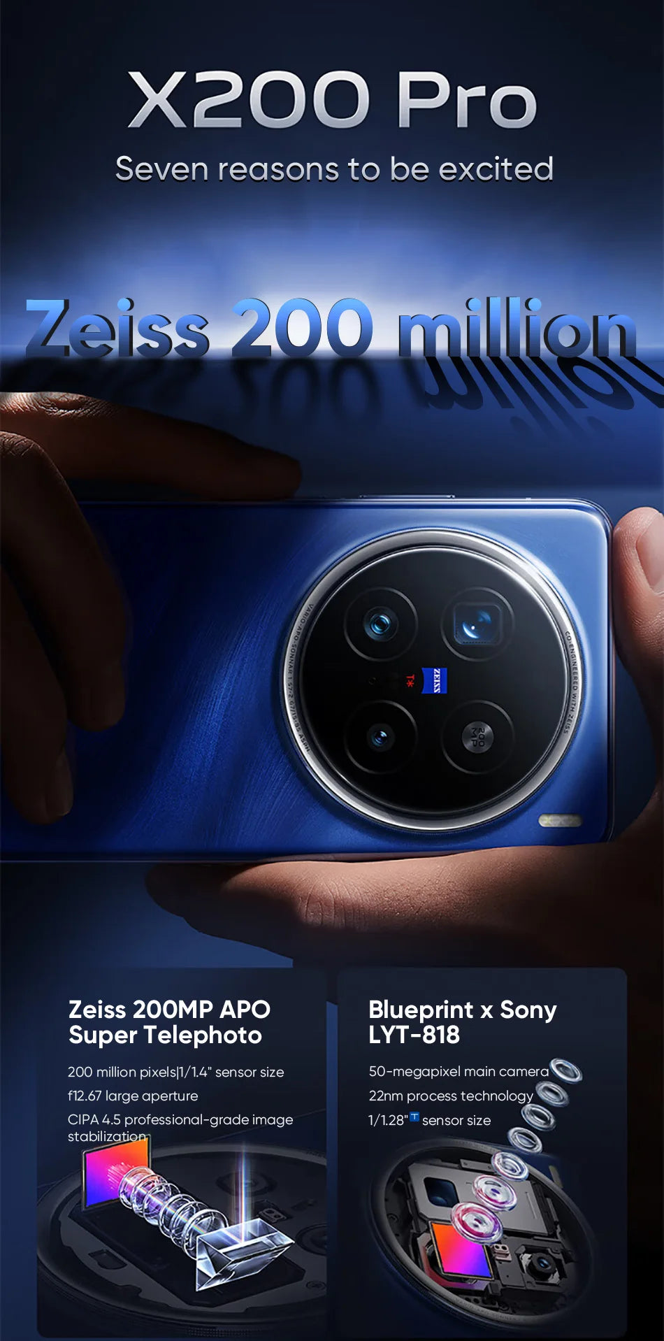 VIVO X200 PRO 5G Dimensity 9400 CPU 6.78 inch AMOLED 120HZ Screen 6000mAh 90W Flash Charger OTA NFC 50MP camera 16GB 512GB/1TB