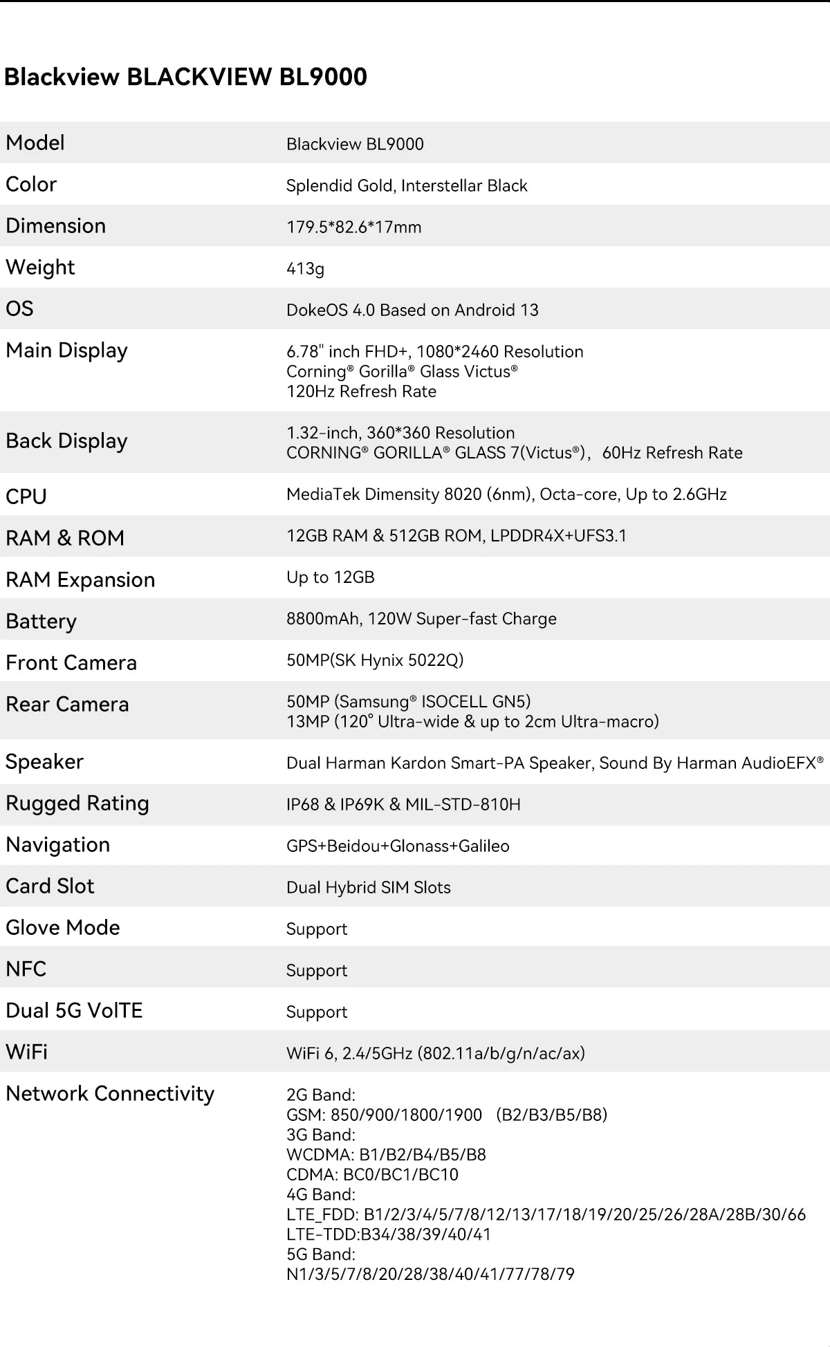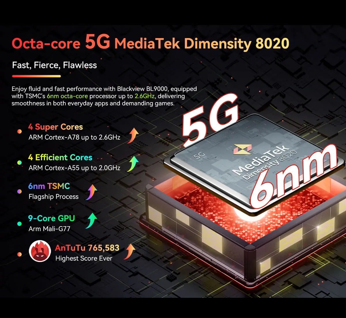 [World Premiere] Blackview BL9000 5G Rugged Smartphone 6.78" 2.4K FHD+ Display (12+12)GB 512GB Mobile Phone 8800mAh With 120W