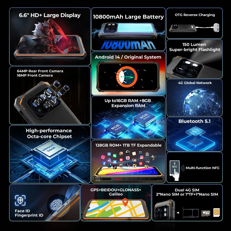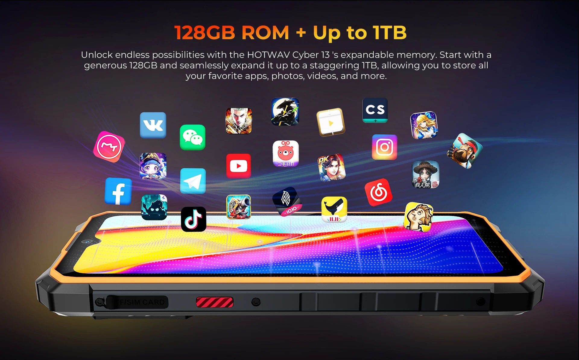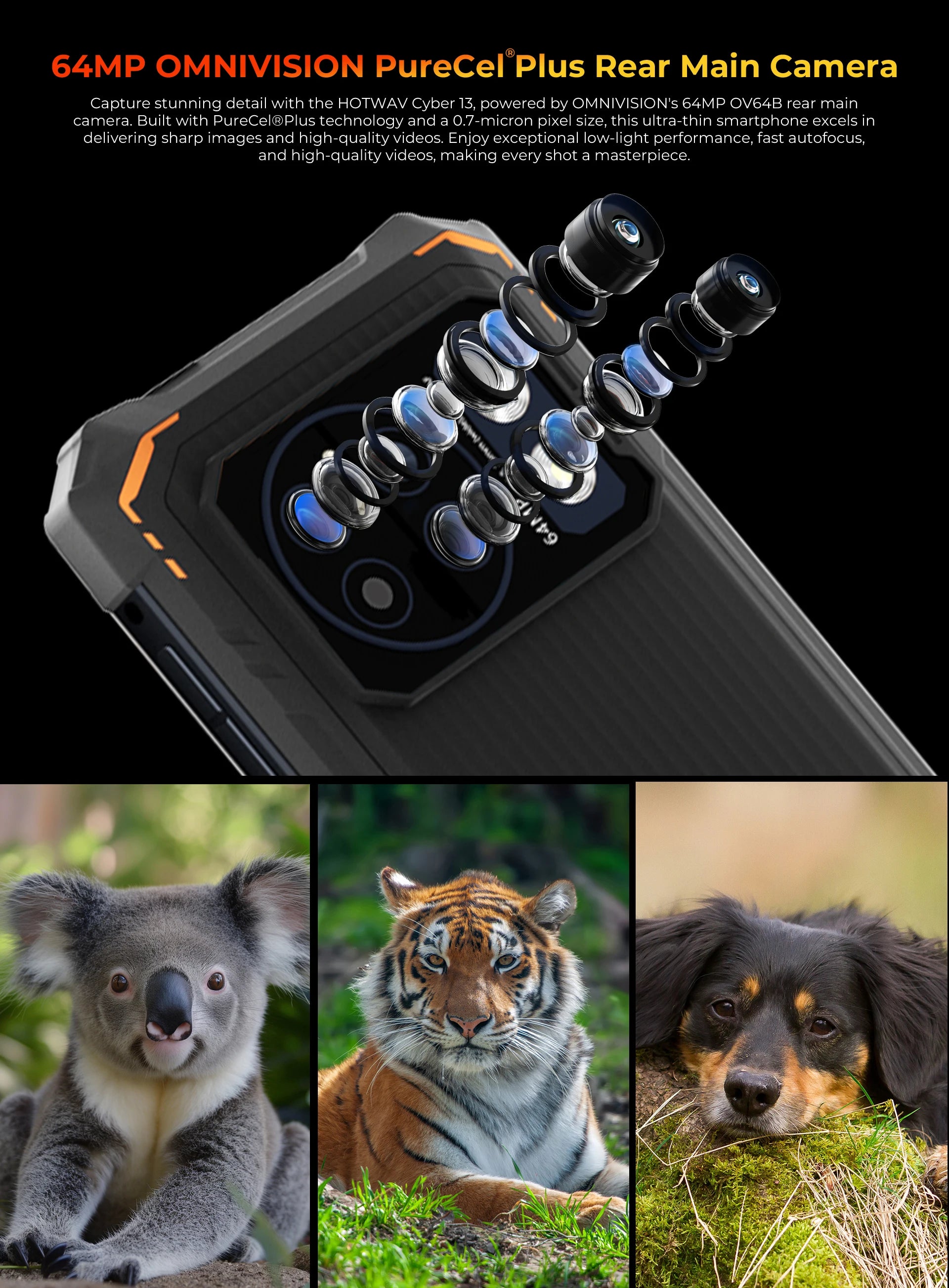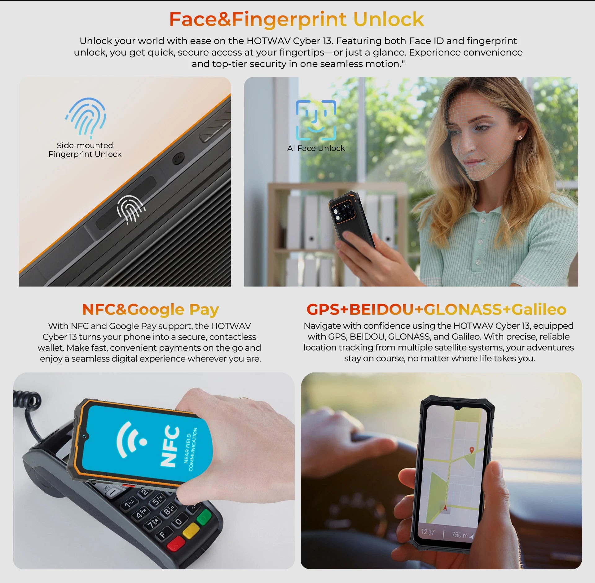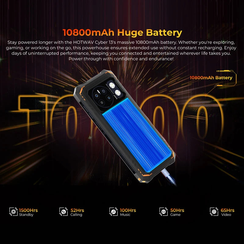 [World Premiere] HOTWAV Cyber 13 Rugged Phone 150LM Flashlight 8GB 128GB Smartphone 6.6'' HD+ 10800mAh 64MP Android 14 Cellphone