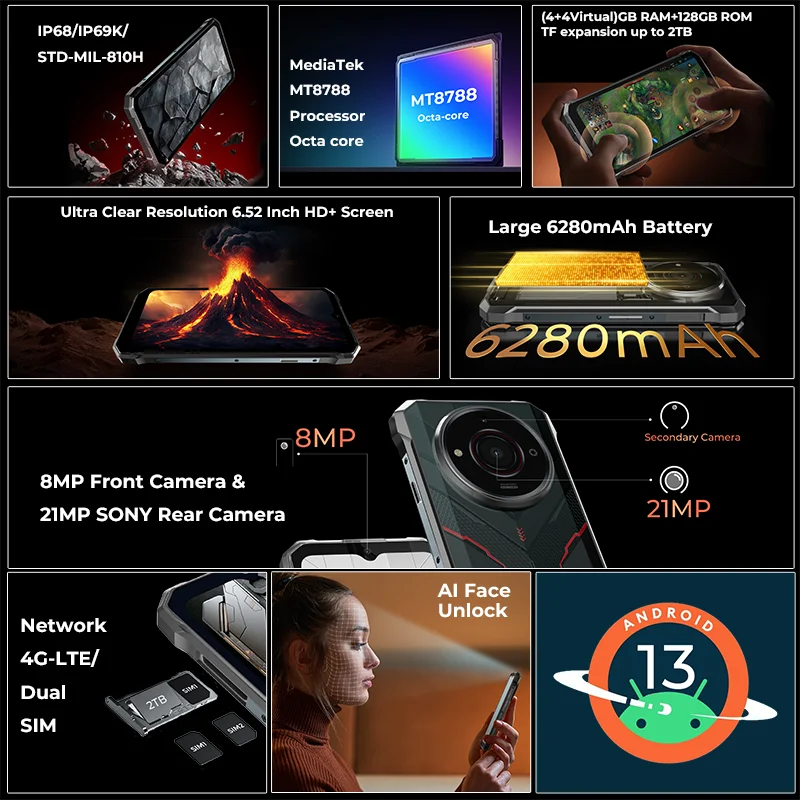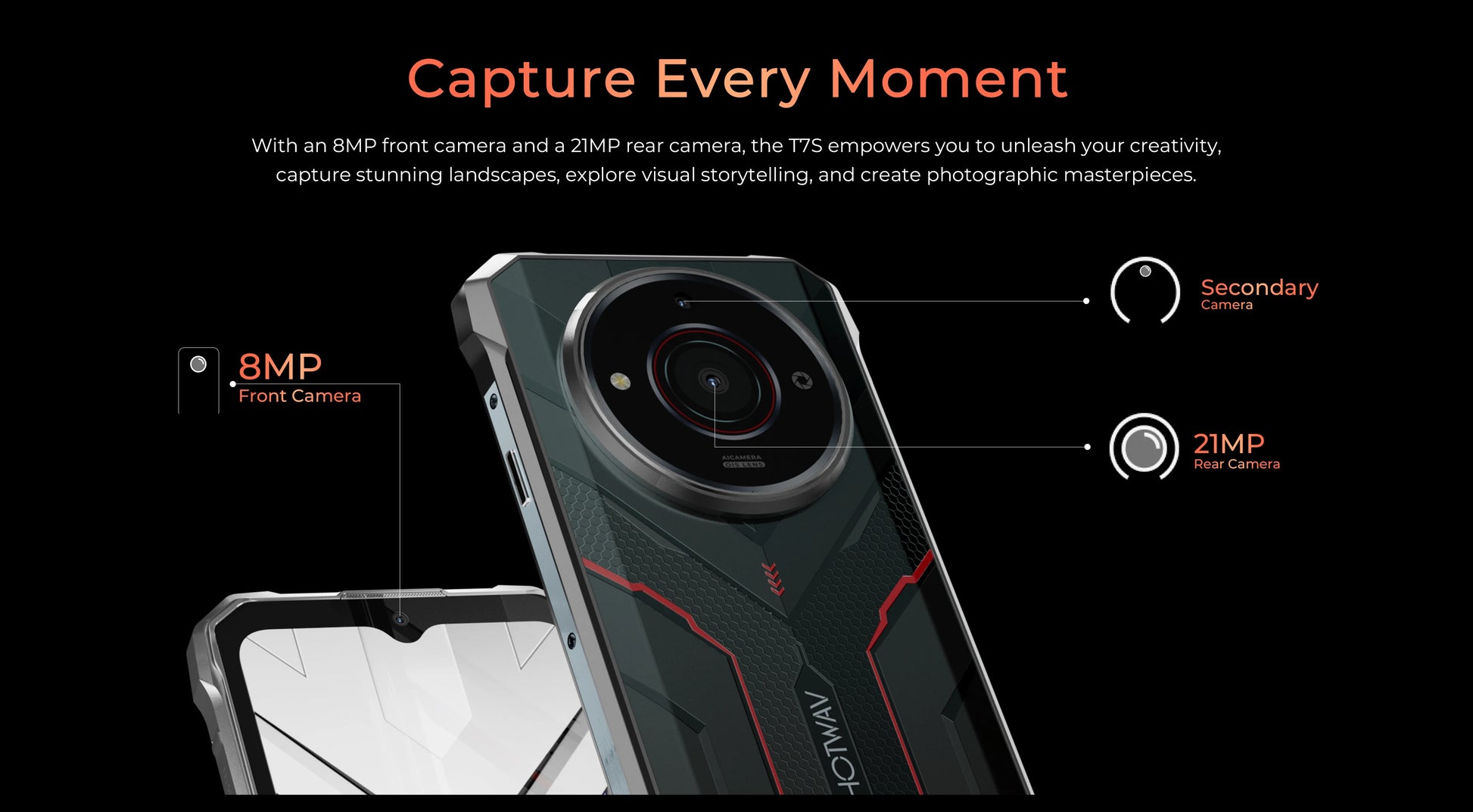 [World Premiere] HOTWAV T7S Ultra Thin Rugged Smartphone 6.52'' HD+ 4GB RAM 128GB ROM MobilePhone 6280mAh Battery 21MP Cellphone