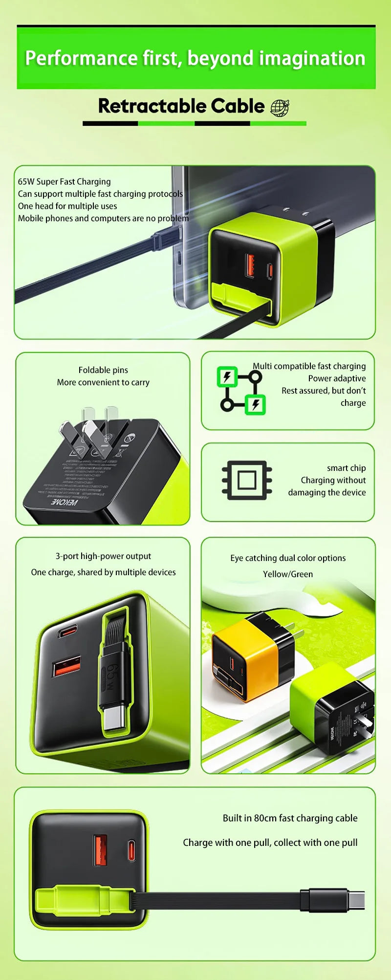 Xiaomi Mijia 65W GaN PD USB-C Charging Head Fast Charger With Built-in 80cm TypeC Cable Suitable for iPhone16 15 Promax NEW 2025