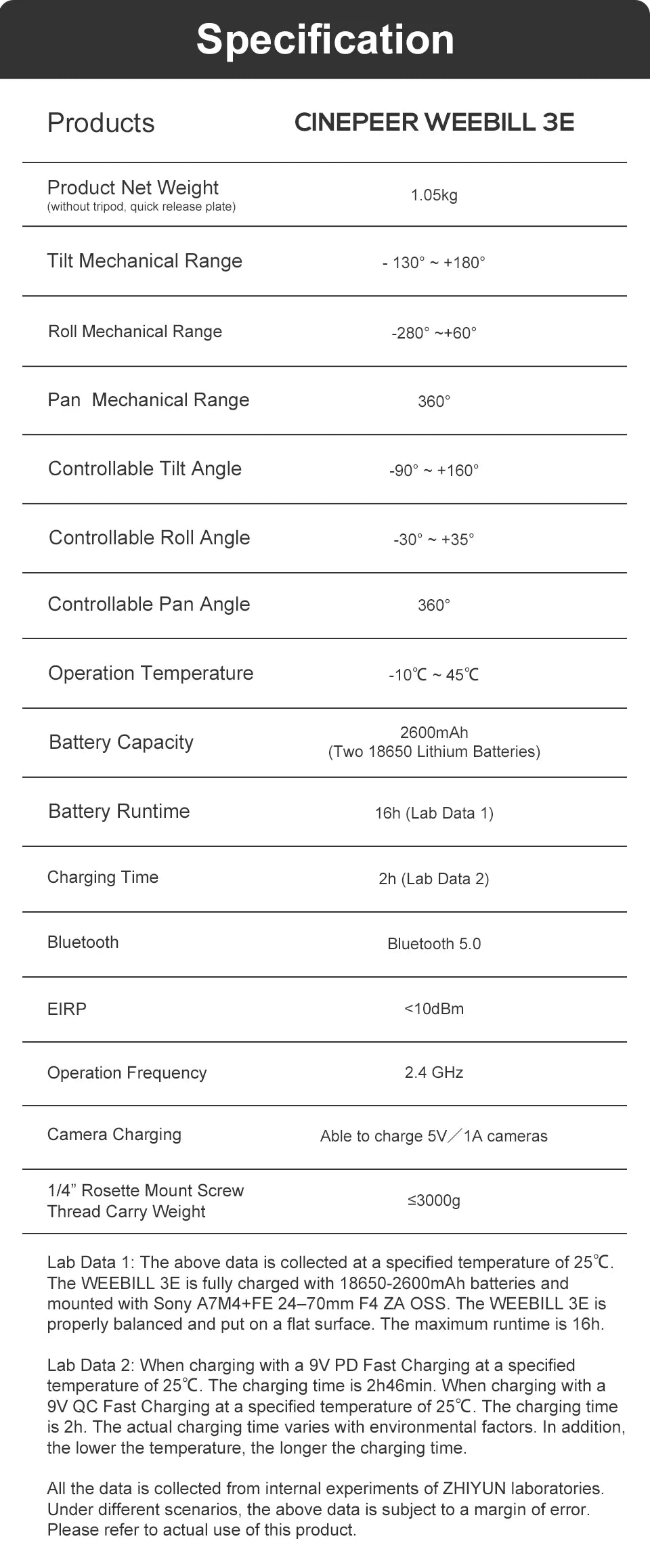 ZHIYUN Official CINEPEER WEEBILL 3E Camera Stabilizer Handheld Gimbal 3-Axis Cameras Gimbals for DSLR Mirrorless Cameras